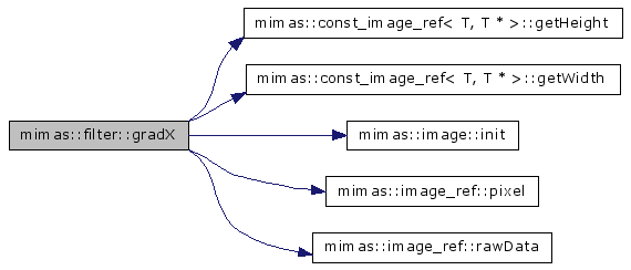 static void mimas::filter::gradX (const image< T > &input, image< T > &output)